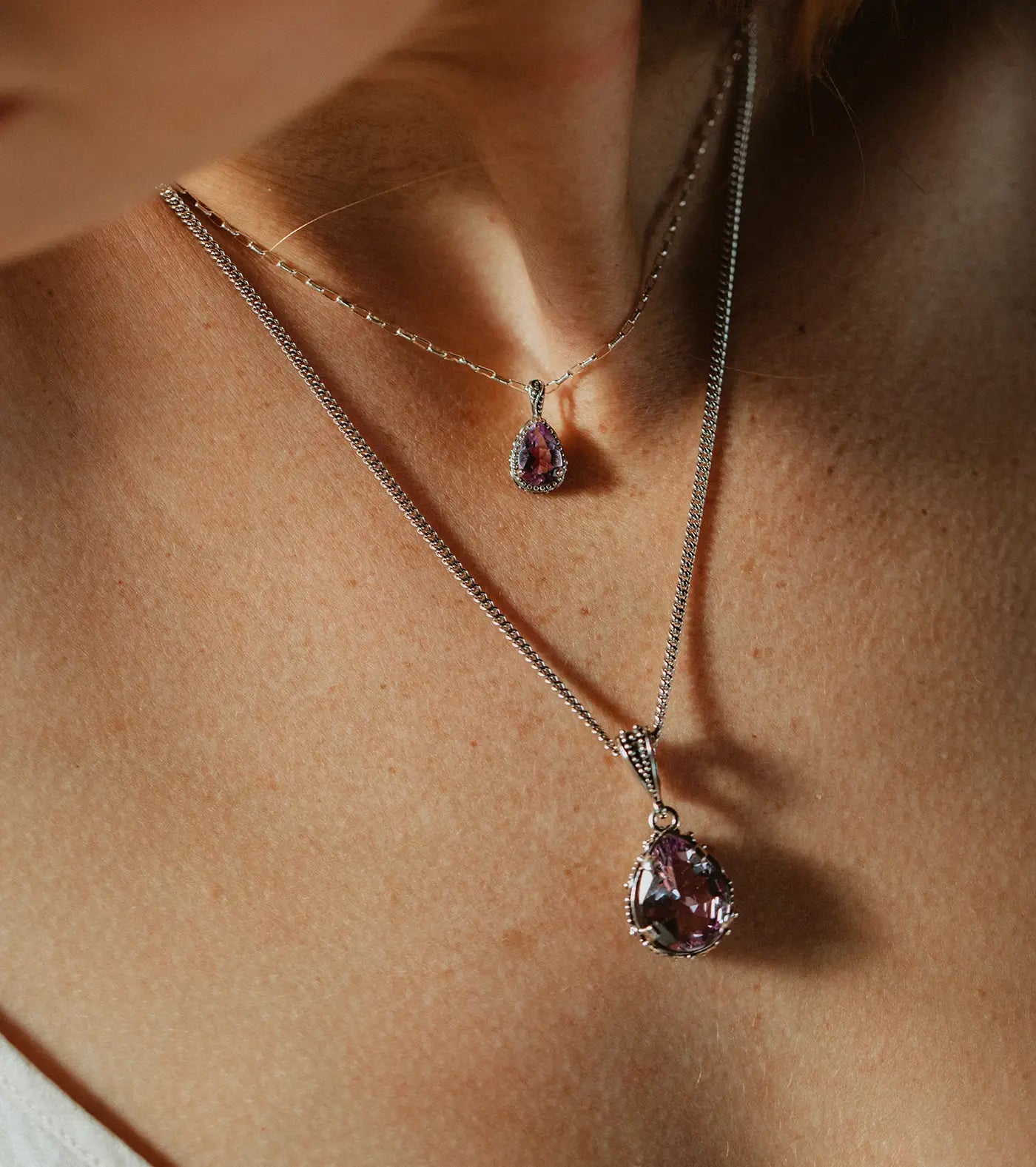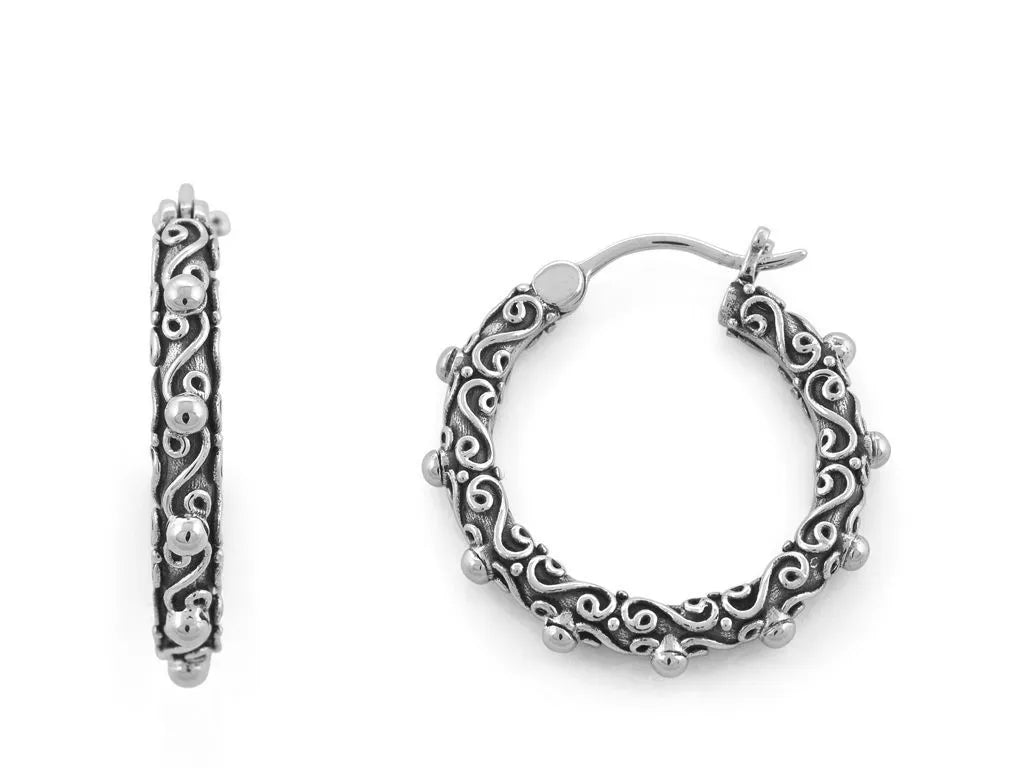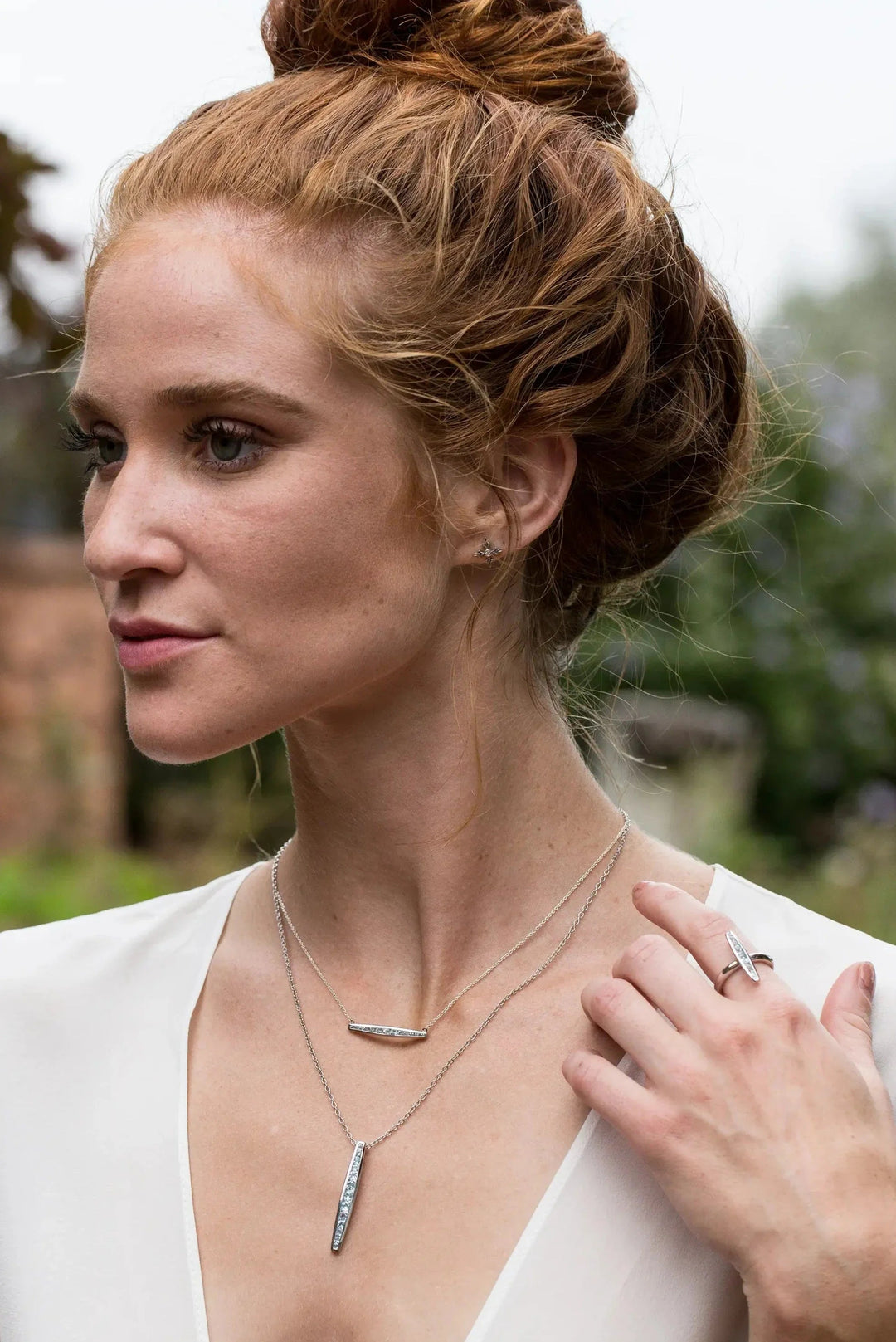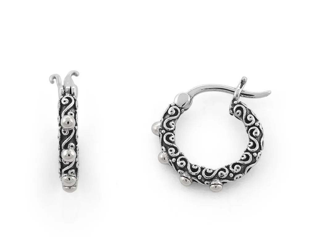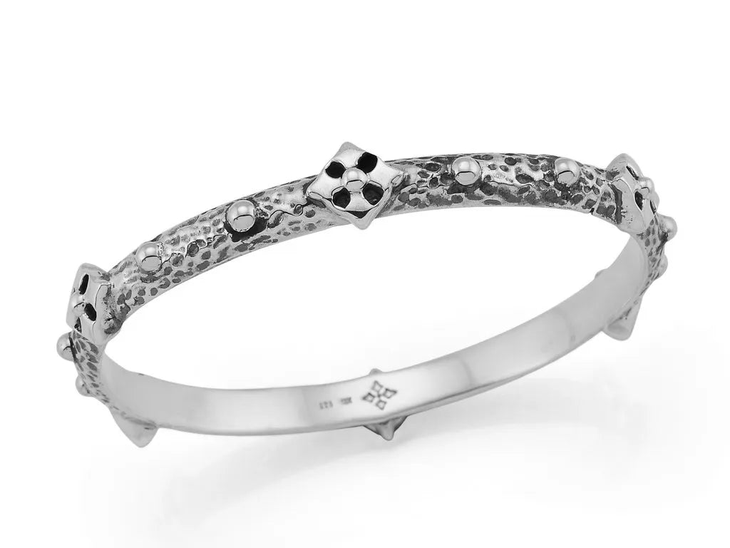 This collection also features hammered sterling silver pieces that create a simple yet intriguing presence.