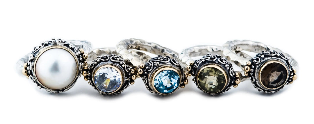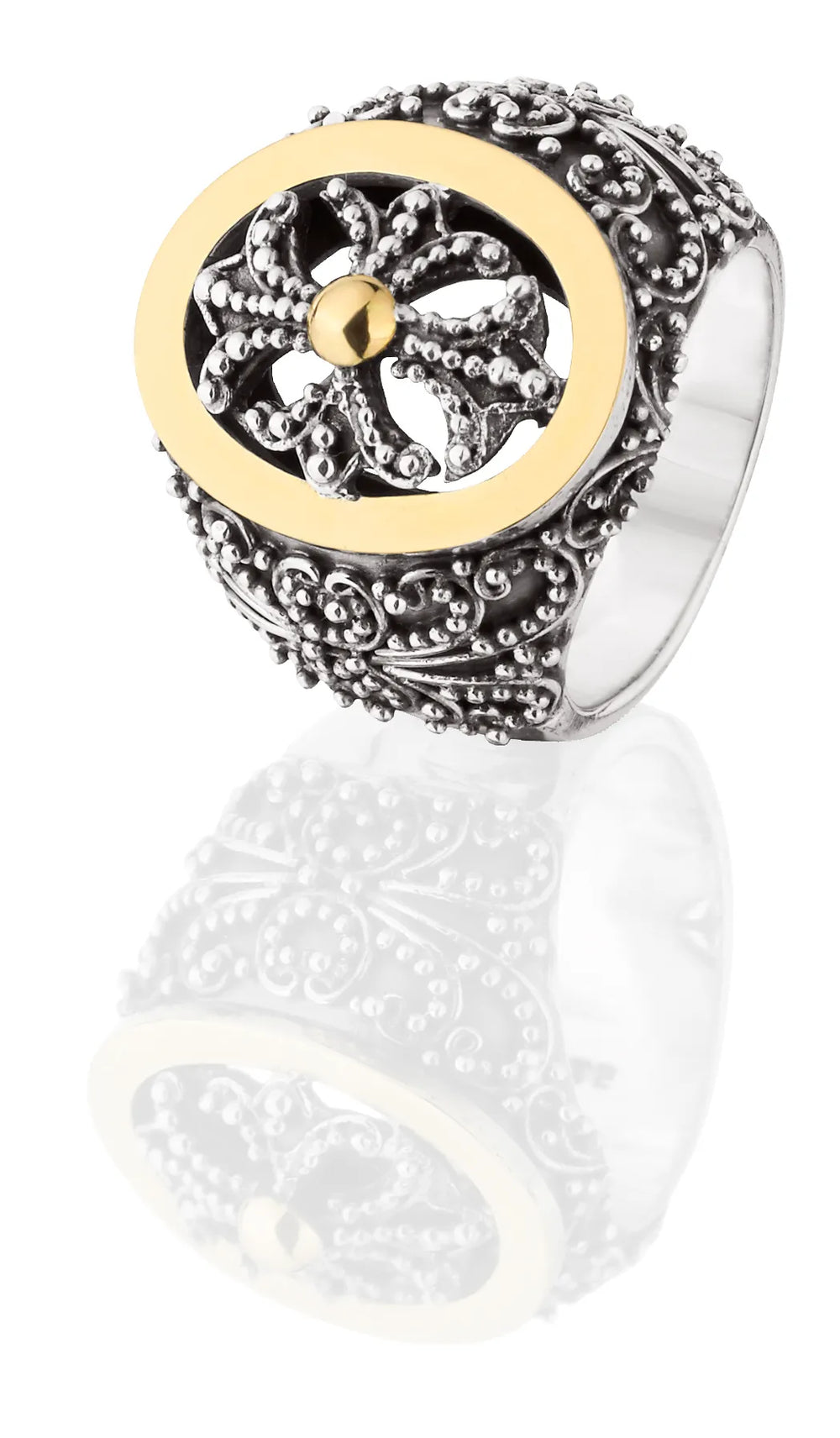 The pieces in the KIR Classic Collection are marked using interesting texture finishes. The most used texture is Jawan, a traditional Balinese technique using hand-dropped granulation creating intricate patterns. This technique is a skill that has been passed down from generation to generation within Balinese families. Most pieces are now cast to maintain a consistency for customers.